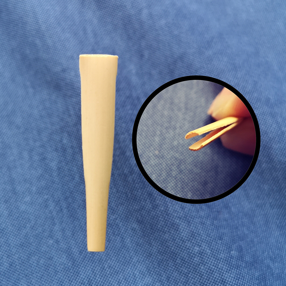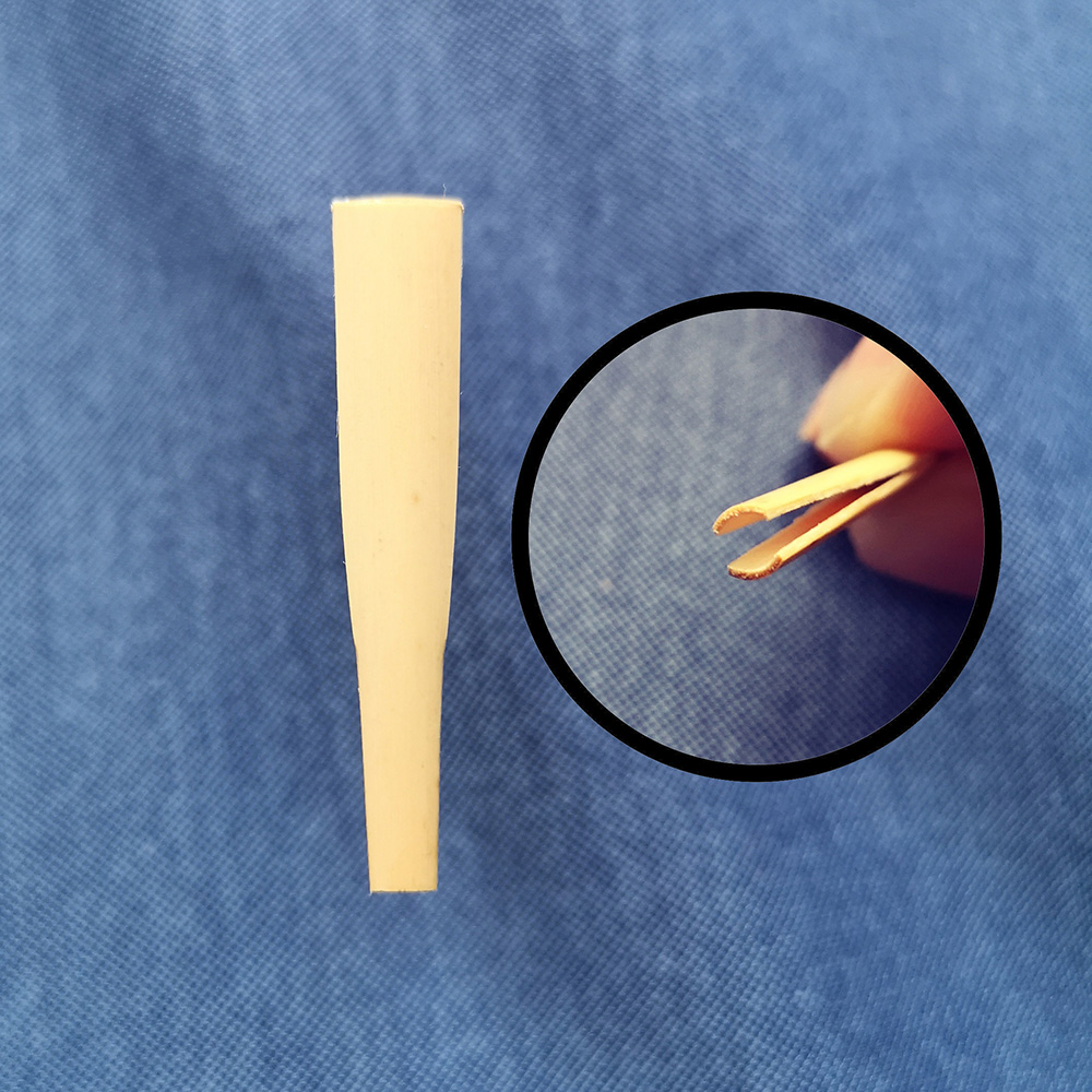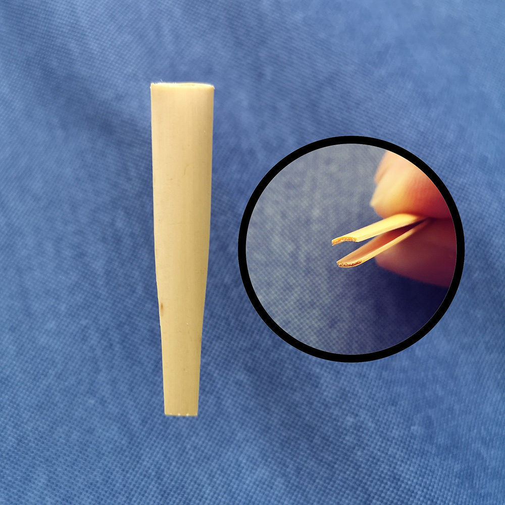 *加工片:我们研发了最新的固定芦苇的工具模型,即把芦苇绑线处,固定到一个更好的形状,更加有助于绑线,与此同时,固定到一个好的模型,大幅度增加哨片寿命,提高哨片的音色和稳定性,并且哨片的封口在泡水后会有良好的状态。